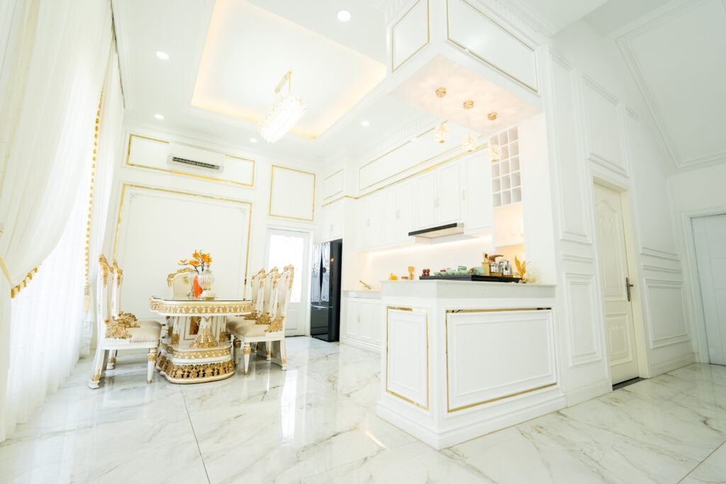 2.ផ្ទះបាយដែលមានទំហំធំទូលាយ ត្រូវបានរចនាឡើងដោយ មានបង្អួចកញ្ចក់ធំៗ ដើម្បីអោយខ្យល់ និងពន្លឺចេញចូលបានគ្រប់គ្រាន់ ថែមទាំងគ្រឿងបរិក្ខារទំនើបៗ ដែលមាននៅក្នុងនោះ ធ្វើឱ្យផ្ទះបាយរបស់អ្នក កាន់តែមានសោភណ្ឌភាព។